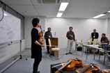 • 三澤さんの楽器について胴長や各バウツ幅、アーチや横板の高さ等を計測し、その楽器を参考値として コメントや質疑応答が交わされました。