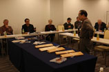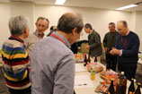 この他増毛氏から新設の製作学校(伊)の紹介パンフ 代官山音楽院高倉氏から弓製作セミナーの案内があった。B・B つまみとビールを片手に交換販売と楽器製作談義に会話が弾みました。
