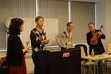 扇畑実行委員長の開会の辞に続き、川原会長の挨拶—今回で15回目の開催を迎え、継続の力担った会員の熱意と実行委員の綿密な実行力のお陰である事、奏者として原 亜緒衣(はら あおい)さんをお迎えしていること、そして遠方から出席の会員をねぎらい、今回北九州から初参加の佐藤良矩氏を紹介した。