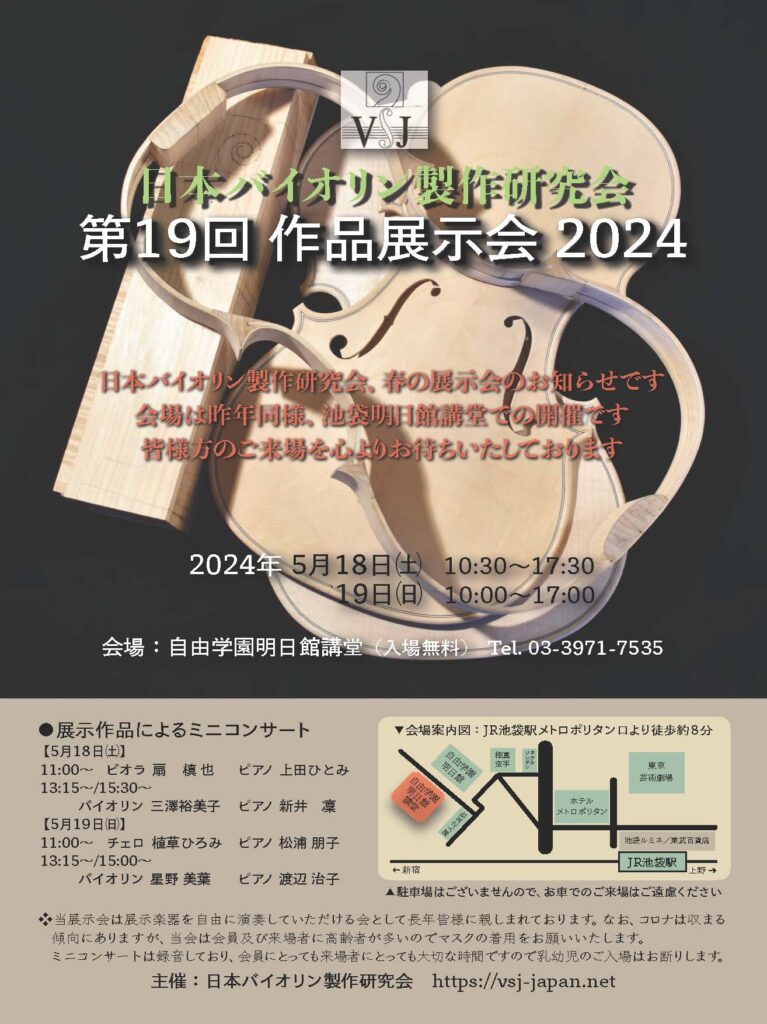 試奏(ミニコンサート)18日(土)11:00~Va 扇 慎也氏 13:15~、15:30~Vn 三澤裕美子氏