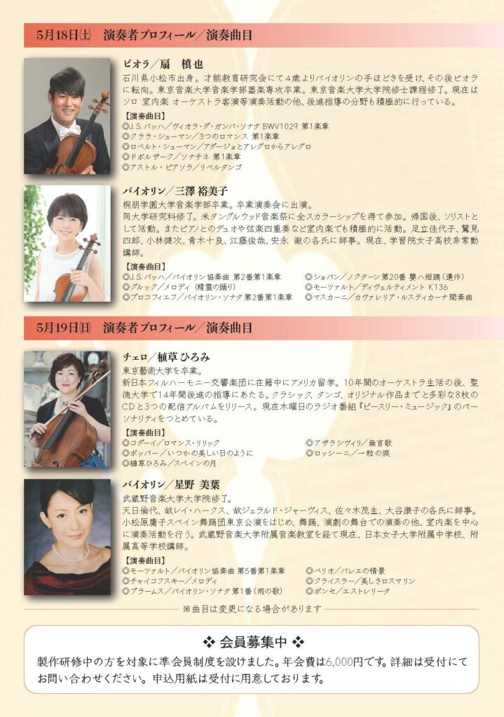 | 6.前島隆生 ショパン / ノクターン第20番嬰ハ短調 遺作 | 6.河村盛介 ーブラームス / バイオリンソナタ第1番雨の歌 |
