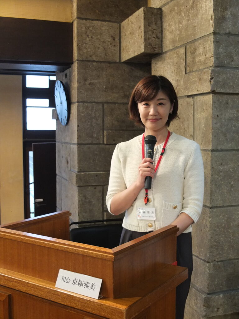 司会は山縣 綾さんのご都合がつかず、山縣さんの先輩のフリーアナウンサー京極雅美さんにお願いしました。