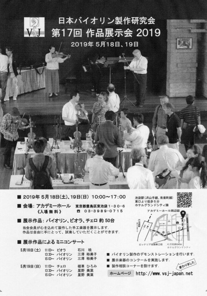 東京池袋 アカデミーホールにて開催 2019年 第17回 日本バイオリン製作研究会の春の展示会が5月18日、19日の2日間 池袋のアカデミーホールで開催されました。 参加者の集合写真です 受付風景 観客の入場 5月18日 AM11:00よりビオラの試奏でミニコンサ... -